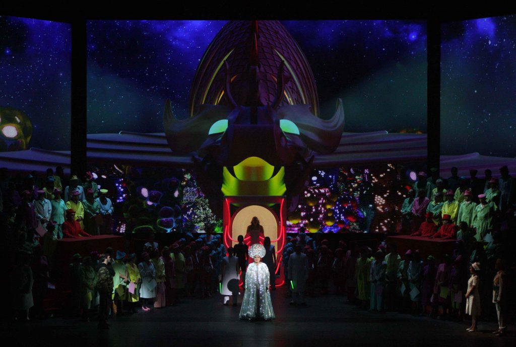 L’opera sarà ambientata non al tempo delle favole, ma nel futuro delle prossime generazioni: un futuro coloratissimo dove i complessi paesaggi urbani fanno da sfondo a un popolo in abiti che ricordano le epoche dei totaliritasmi europei. Il regno di Turandot è un matriarcato che punisce gli uomini per lo stupro subìto dall’ava della principessa: lattei robot dalle sembianze vagamente femminili torturano gli sfortunati pretendenti e il palazzo di Turandot è un gigantesco drago che sorvola i cieli della città proiettando immagini tridimensionali che rappresentano i diversi aspetti della personalità della principessa. La fiaba di Turandot ha origine in Persia, si sposta poi in Cina, trasformata in commedia da Carlo Gozzi a Venezia, tradotta infine in tedesco da Schiller, la fonte cui attingono Puccini e i suoi librettisti: come nota il regista Fabio Cherstich, “Turandot è una favola “globalizzata” ante litteram, in cui etnie e nazionalità perdono di significato nella raffigurazione di un mondo fantasioso e astrattamente lontano. Oggi – che la Cina e la Russia sono a un volo o a un tweet di distanza – questo mondo lontano è il futuro della società globale”.