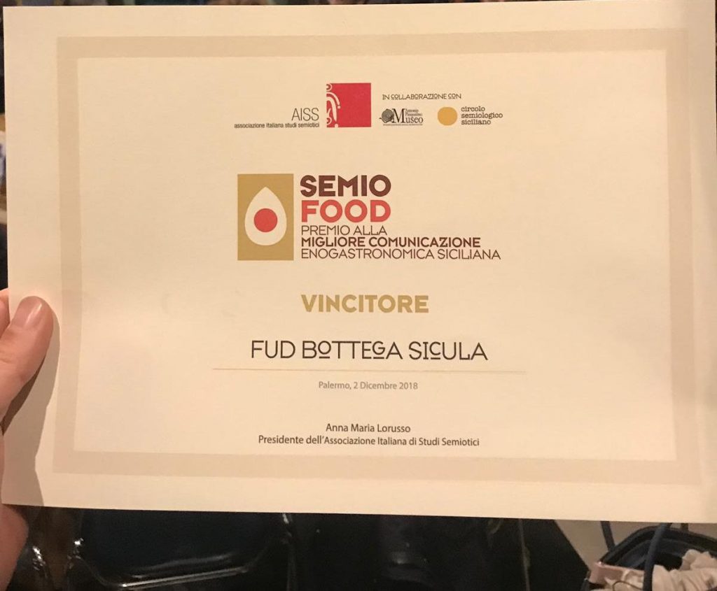 Il premio Semiofood in linea con il tema del congresso: “Politiche del gusto: mondi comuni, tra sensibilità estetiche e tendenze alimentari” ha incoronato Fud Bottega Sicula per la migliore comunicazione di brand tra le aziende siciliane nel settore dell’enogastronomia.