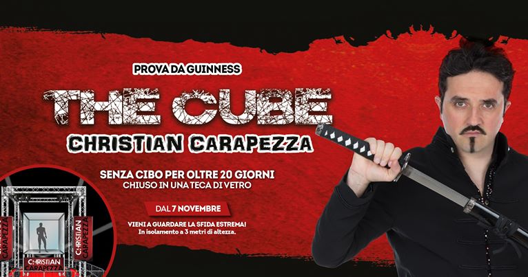 Artisti del mondo dello spettacolo, cabarettisti, cantanti, ballerini e show man a sostegno dell’impresa che compierà Christian Carapezza, illusionista estremo palermitano che dal 7 novembre si chiuderà all’interno di un cubo di vetro al Centro commerciale Conca D’Oro di Palermo dove tenterà di sopravvivere, senza cibo, per quasi trenta giorni. The Cube, questo il nome dell’impresa che lo vedrà protagonista: una prova di resistenza fisica e mentale da primato, che non ha precedenti in Italia.