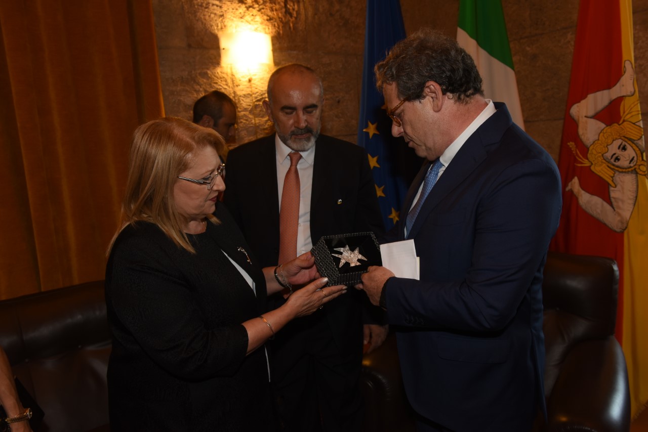 Seduta straordinaria dell’Assemblea regionale siciliana in occasione della visita a Palermo del presidente della Repubblica di Malta, Marie Louise Coleiro Preca ricevuto in visita ufficiale a Palazzo dei Normanni.
