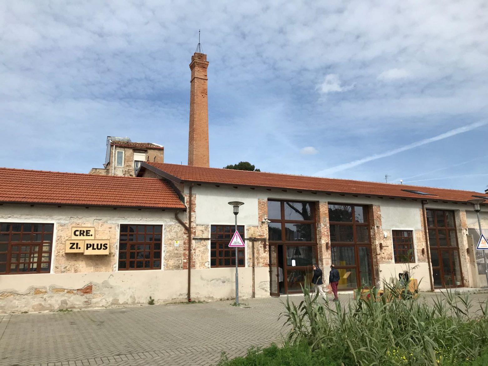 Sembra l’ingresso di un condominio. Anzi meglio di una fabbrica. E in effetti i Cantieri culturali alla Zisa di Palermo non hanno mai tradito la vocazione alla fabbrica: costruiti dai Ducrot, luogo di sperimentazione e creatività dell’architetto Basile, abbandonati per anni dall’incuria di amministrazioni miopi, oggi i Cantieri sono una fabbrica culturale e di creatività, un esperimento riuscito di rilancio di una struttura di archeologia industriale tornata a vivere grazie all’impegno del terzo settore, del volontariato, delle istituzioni culturali cittadine.