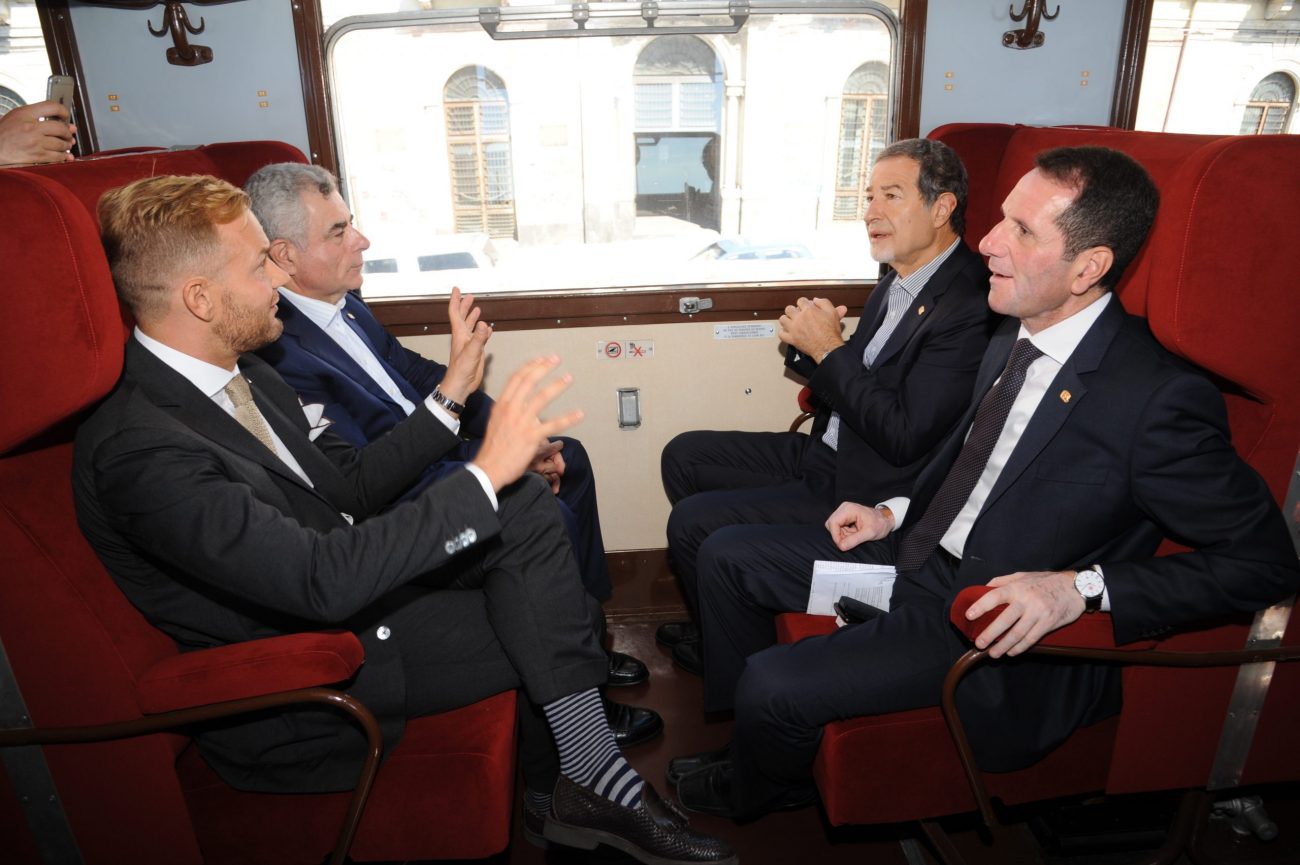 Scoprire il territorio siciliano e quest’anno anche i suoi prodotti tipici, utilizzando i ‘treni storici’. Il programma della Fondazione Ferrovie dello Stato è stato presentato oggi, alla presenza del presidente della Regione Siciliana Nello Musumeci e dell’assessore al Turismo Sandro Pappalardo, dal presidente della Fondazione FS, Mauro Moretti e dal direttore generale, Luigi Cantamessa, a bordo di un treno degli anni Trenta, partito dalla stazione di Catania e arrivato a Siracusa.