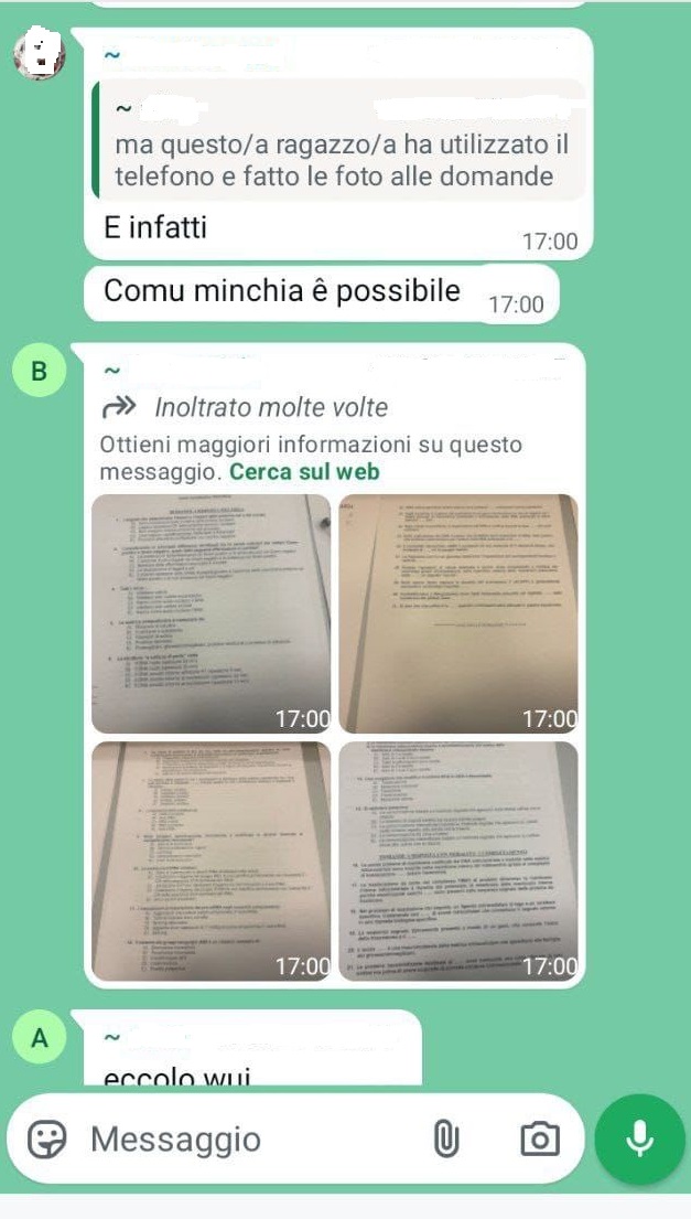 La giornata, secondo le linee guida ministeriali, doveva essere monitorata con rigore dagli atenei. Eppure, nel pomeriggio, sui social sono circolate foto dei compiti prima della fine della prova. Una fuga che, da sola, basterebbe a mettere in dubbio la credibilità del sistema. Ma le testimonianze raccolte in varie sedi universitarie raccontano ben altro.