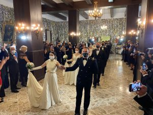 Dodici giovani ragazze in abiti da cerimonia, accompagnate dai loro cavalieri – giovani ufficiali e sottufficiali dell’Esercito,...