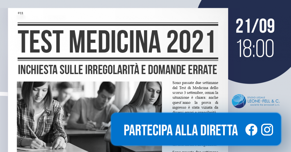 Proprio per analizzare e discutere delle irregolarità verificatesi quest’anno oltre che dei quesiti errati presenti nel test, lo Studio legale Leone-Fell, esperto di diritto amministrativo e leader nel campo dei ricorsi, ha organizzato una diretta su Facebook e Instagram fissata per martedì 21 alle 18.