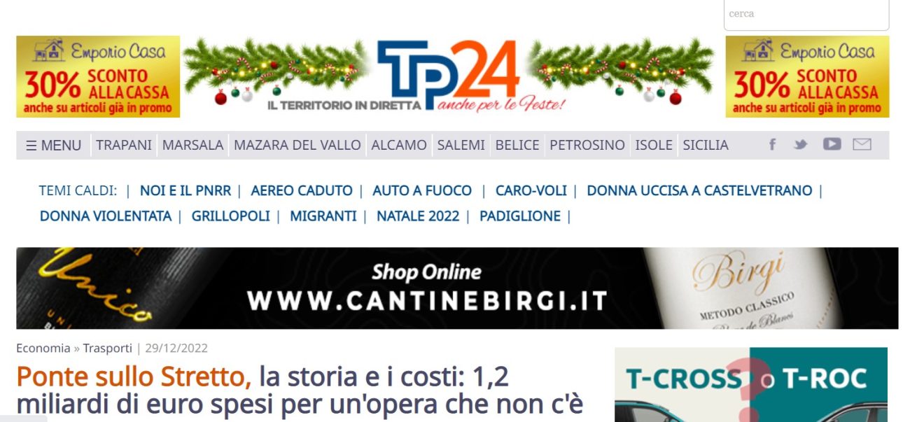Tp24, la testata della provincia di Trapani è stata valutata come “best practice” in Italia, nell’ambito di una ricerca internazionale su “Local Journalism and Municipal Communication under Digital Transformation” per “individuare casi eccezionali e innovativi nel campo del giornalismo locale in Italia”.
